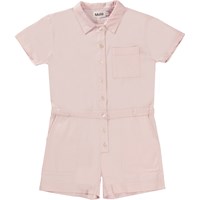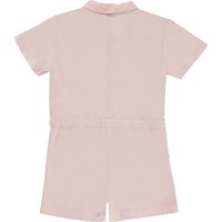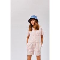Angela is a pink jumpsuit in a shirt look with short sleeves and short legs in 100% cotton. Angela has a button front closure, side pockets and a single chest pocket. The back of the waist has elastic.