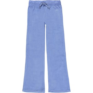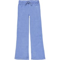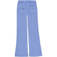 Annie is a pair of blue velour sweatpants. They have a slight flare at the bottom of the legs and an elastic waist with ties. Wear the sweatpants with a matching hoodie for a complete look.