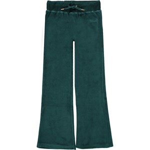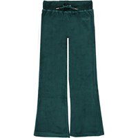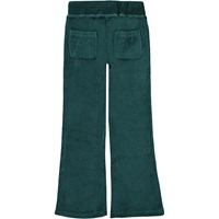 Annie is a pair of green velour sweatpants. They have a slight flare at the bottom of the legs and an elastic waist with ties. Wear the sweatpants with a matching hoodie for a complete look.