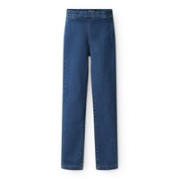 April is a pair of blue jeggings in a jeans look with an elastic waist. The stretchy fabric ensures a comfortable fit and makes the jeggings easy to move around in.