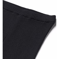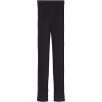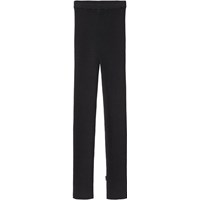 Black long ribbed leggings made of a wool and cotton blend. These leggings have an elastic waistband and are slim fit.