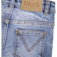 Blue jeans made of organic cotton with stretch, 5 pockets, wide legs and a regular fit. The jeans are decorated with rhinestones on the front and back.