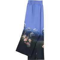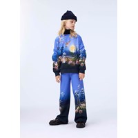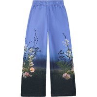Blue sweatpants made of organic cotton. The sweatpants have a loose fit with wide legs and elastic around the waist and a colourful print of a meadow with flowers. Combine the sweatpants with the sweatshirt to complete the set.