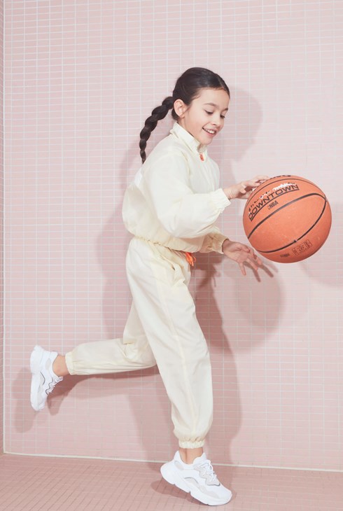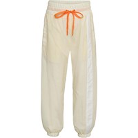 Oleen is a pair of high waisted trackpants in light yellow with white stripes on the front on one leg. They have a wide elastic waist with orange ties. Wear the trousers with the matching track jacket. The Oleen trackpants are comfortable and constructed in technical materials that make them wearable for down time as well as intense activity. Molo’s sports collection is created with a unique, high performance technology called HeiQ Smart Temp, which supports the body's own ability to cool down. The cool down function is activated when the body gets warm and sweaty, and then turns off when the body has cooled down. HeiQ Smart Temp ensures optimal comfort and performance. It has been independently tested to ensure that it is safe for the skin.