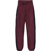 Orli is a pair of high waisted track pants with a blue stripe and a black text tape down the sides. They have a wide elastic waist with ties. Wear it with one of the colour-blocked styles from the sports collection. Orli ensure perfect comfort and flexibility, while allowing for full, unrestricted movement. Orli is a part of Molo's new sports collection, which seamlessly unites fashion and sports. Wear the Orli track pants with one of Molo's sports tops for a complete, sporty look. Molo’s sports collection is made with a unique, high-performance technology called HeiQ Smart Temp, which supports the body’s natural ability to cool itself down. The cooling function is activated when you are warm and sweating. The cooling function becomes deactivated when the body has cooled down. HeiQ Smart Temp ensures optimal performance and comfort. Independently tested for skin safety.