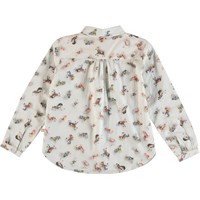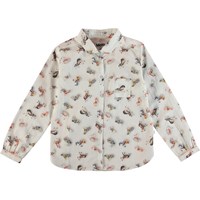 Reca is a classic poplin shirt in Molo's "Mini Carousel" print. Reca has a button closure and a small pocket on the front.