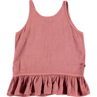 Rosann is a wide, rose-coloured top with a ruffle bottom.