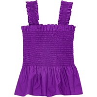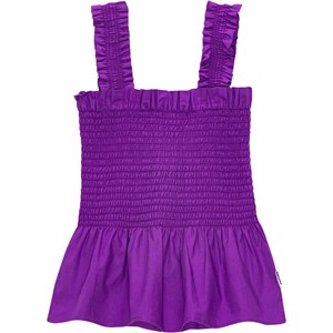Pastel purple top in organic cotton. The top is in a snug fit with lovely ruffle straps and an elastic, smocked chest that creates a voluminous effect at the bottom.