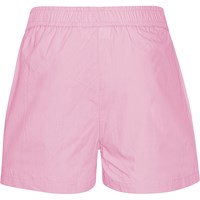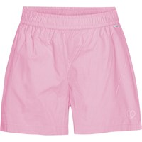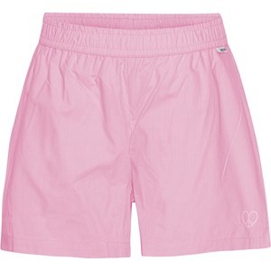 Air is a pair of pink shorts in organic cotton. They have elastic at the waist and a small peace sign, shaped like a heart, printed on the thigh.