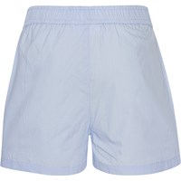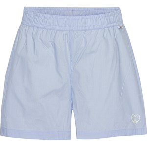 Air is a pair of light blue shorts in organic cotton. They have elastic at the waist and a small peace sign, shaped like a heart, printed on the thigh.