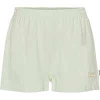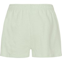 Akima is a pair of light green shorts with elastic in 100% cotton. The shorts have elastic at the waist and the "Groovy Green" embroidery at the bottom of one leg.