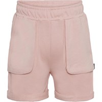 Ara is a pair of rose shorts with large front pockets and 'One world, one love' embroidered on the back. The shorts have roll up at the legs and have an elastic waist.