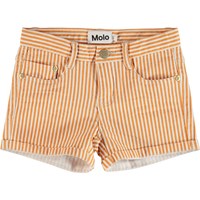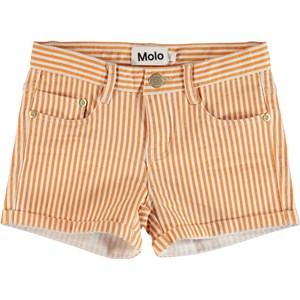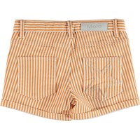 Audrey is a pair of orange striped shorts that help set the summer mood. They have small roll up on the legs and front and back pockets and a button closure.