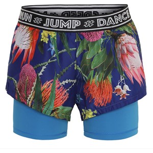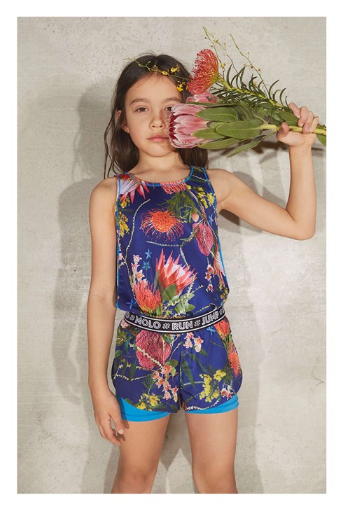 Omari is a pair of two-part shorts, where the outer shorts are in a blue floral and the inner shorts are in a solid blue colour. The Omari shorts ensure perfect comfort and flexibility, while allowing for full, unrestricted movement. Omari is a part of Molo's new sports collection, which seamlessly unites fashion and sports. Wear the Omari shorts with one of Molo's sports tops for a complete, sporty look. Molo’s sports collection is made with a unique, high-performance technology called HeiQ Smart Temp, which supports the body’s natural ability to cool itself down. • The cooling function is activated when you are warm and sweating. • The cooling function becomes deactivated when the body has cooled down. • HeiQ Smart Temp ensures optimal performance and comfort. • Independently tested for skin safety. •