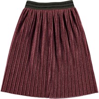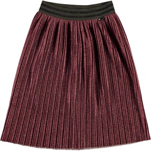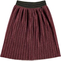 The Bailini skirt is one of Molo's favorites and is great for special occasions but also for everyday wear with a casual t-shirt. This skirt is in dark red glitter with a green waist and stripes.