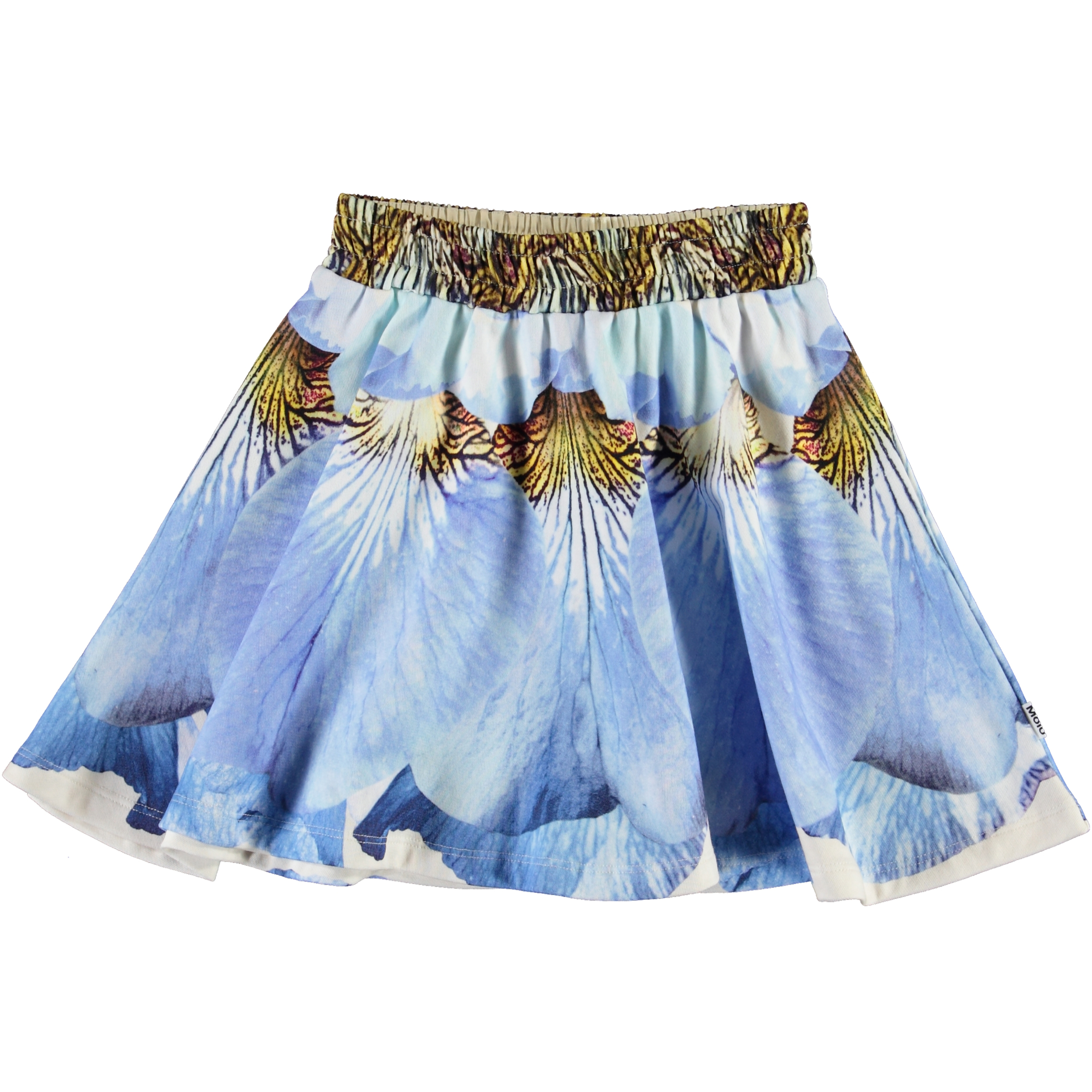 Barbera is a skirt with a flower petal print. The skirt has an elastic waist, which gives it a comfortable fit.