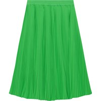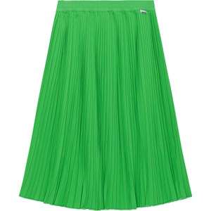Green, knee length, pleated skirt. The skirt is in 100% polyester and has elastic at the waist for easy dressing.