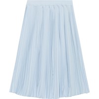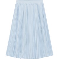 Light blue, Knee length, pleated skirt. The skirt is in 100% polyester and has elastic at the waist for easy dressing.