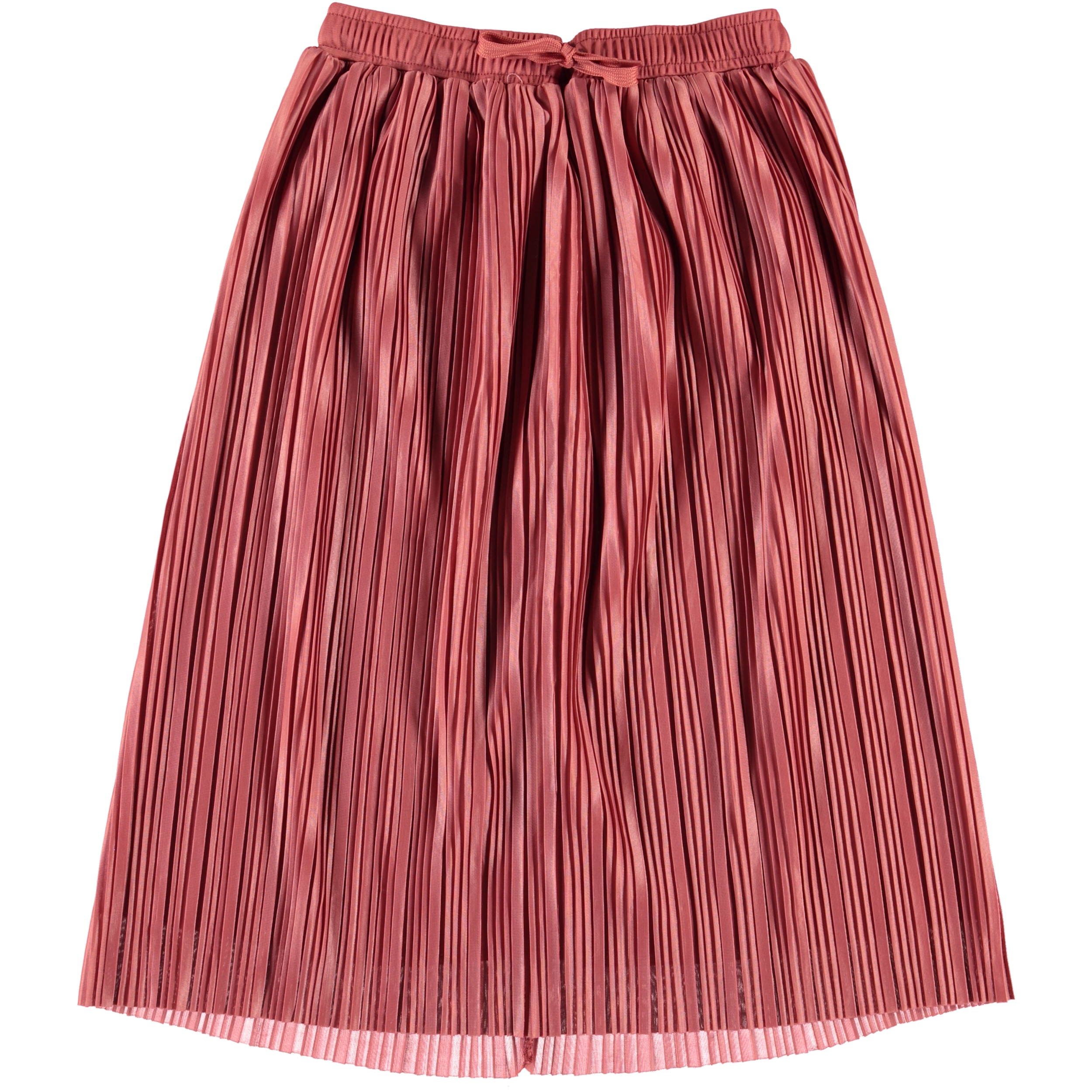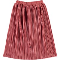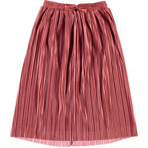 Becky is a long, rose-coloured, pleated skirt with ties at the waist.