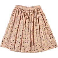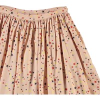 Beli is a lightweight pink skirt with a print of small, colourful stars. It has a side zip closure.