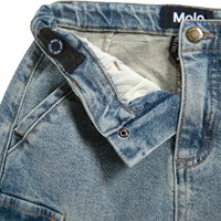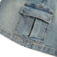 Blue denim skirt made of organic cotton. The skirt is knee-length, has a regular fit and the waist has belt loops, button and zip closure, as well as an inner elastic in the waist to ensure the right fit for all children. The skirt has front and back pockets as well as large cargo pockets on the sides.