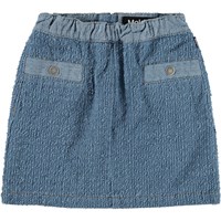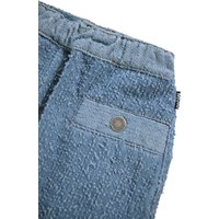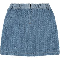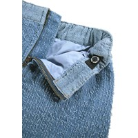 Blue short bouclé denim skirt. The skirt has pockets at the front, an elastic waist and an invisible zipper at the front to make it easy to put on. Combine it with the matching jacket.