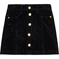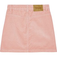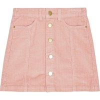 Powder-coloured corduroy skirt with gold-coloured buttons for fastening. The skirt reaches mid-thigh and has a waist with belt loops and front pockets. The beautiful cut includes detailed stitching that runs from the pockets down.