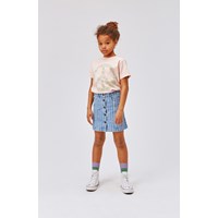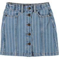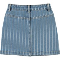 Bera is a denim skirt in light blue and white stripes. It has a button closure on the front, belt loops and pockets on the front.