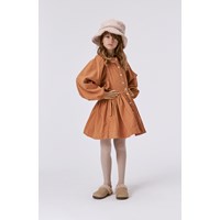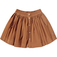 Burnt orange, full circular skirt in a pin wale corduroy. This skirt is in 100% cotton, has side pockets and elastic at the waist, which makes it easy to pull on and off. The skirt has a front button closure with white buttons. The skirt ends at the knees and is in a regular fit. Wear it with the Rida blouse in the same colour for the perfect set.