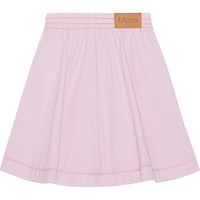 Pink, knee length skirt in a soft cotton and viscose blend. It has elastic at the waist, side seam pockets and brass coloured snaps on the front. The skirt is circular and drapes beautifully.