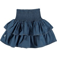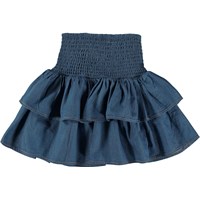 Blue knee length skirt in chambray with a smocking effect.he product lives up to its contents.