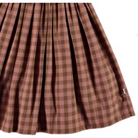 Bree is a long, cotton poplin skirt in a pink and brown plaid. The skirt is full and has an elastic waist, which makes it extremely comfortable.