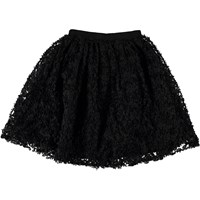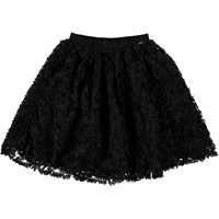 Brook is a black skirt where the outer layer has a lot of small flowers put together. It has an elastic waist.
