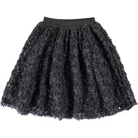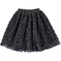 Brook is a black skirt with small, pleated flowers that give the skirt a 3D effect. The skirt is full and has an elastic waist.