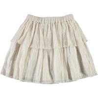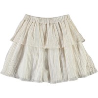 Brooke is a light coloured skirt with metallic stripes. The skirt is in a double layer and has an elastic waist.
