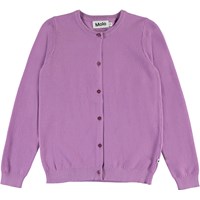 Georgina is a purple cotton cardigan in a lovely knit pattern with a button closure.