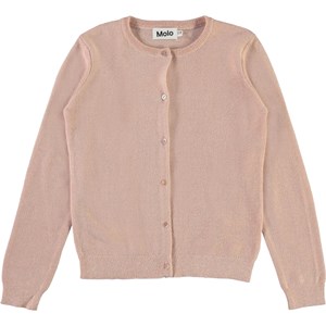 Georgina is a rose coloured cotton cardigan in a delicate knit pattern and with a button closure.