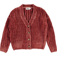 Gianna is Molo's new chenille knit cardigan in a golden colour. The cardigan is short, has a v-neck and a button closure.