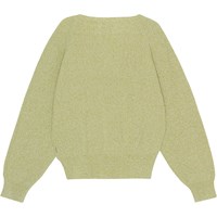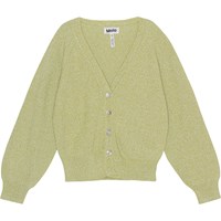Melange cardigan in green and sand coloured cotton knit. It has a rib knit neck and placket with 4 mother of pearl coloured buttons. There is also rib at the raglan sleeve cuffs and bottom. The cardigan has a classic, loose fit.