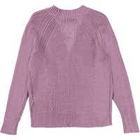 Gilda is a light purple knit cardigan. It has a v-neck and a button closure.
