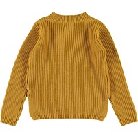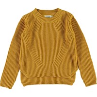 Gillis is a golden cotton knit top with long sleeves. The top has a round neck and a lovely knit pattern.