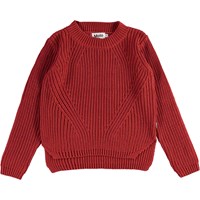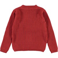 Gillis is a dark red cotton knit top with long sleeves. It has a round neck and a lovely knit pattern. The top is made of certified organic cotton.