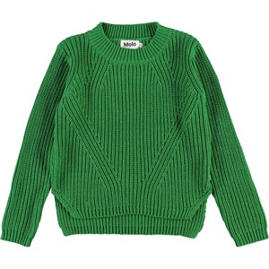 Gillis is a green cotton knit top with long sleeves. It has a round neck and a lovely knit pattern. The top is made of certified organic cotton.