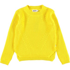 Gillis is a yellow cotton knit top with long sleeves. It has a round neck and a lovely knit pattern. The top is made of certified organic cotton.