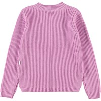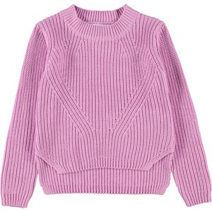 Gillis is a pink knit jumper, with long sleeves, in 100% cotton. Gillis is in a rib knit with a pattern that increases and decreases on the front for an exclusive look. The back is longer than the front.