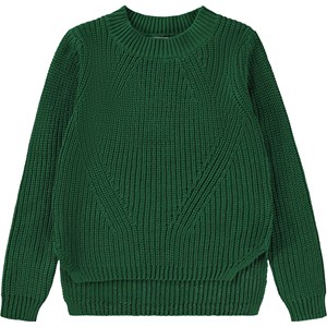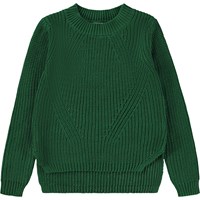 Green knit jumper with a knit pattern design in 100% cotton. It is longer in the back, has long sleeves with rib, rib at the bottom and is in a regular fit. It's the perfect everyday knit jumper.