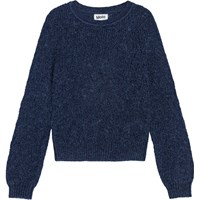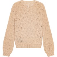 Light peach-coloured knitted jumper in alpaca wool/wool blend. The jumper features a delicate lace pattern and long, voluminous sleeves. It has a round neckline with ribbing and ribbed cuffs at the sleeves and hem. The jumper has a regular fit and is perfect for everyday wear.