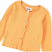 Orange cardigan in a soft organic cotton rib. The cardigan is fitted with a round neck and mother-of-pearl buttons on the front.