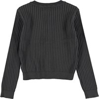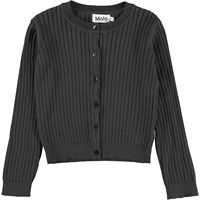 Gloria is a grey knit cardigan in a short fit. The cardigan has a button closure on the front.