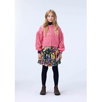 Thick pink cardigan made of an alpaca wool blend. This cardigan has a beautiful woven pattern, voluminous balloon sleeves and fine buttons at the front. The cardigan has ribbed edges aroung the neck sleeves and waist,